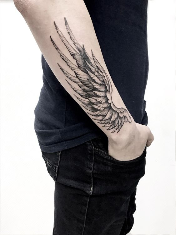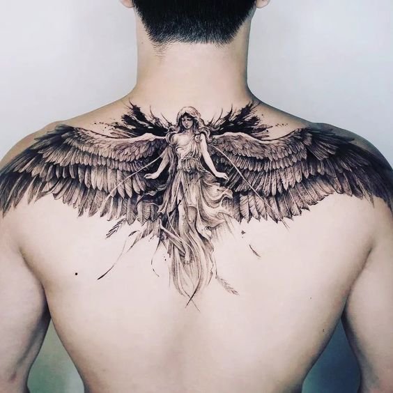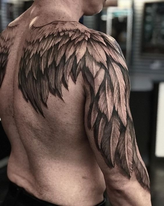 Ami a férfit illeti, a szárnyak tetoválását általában egyszínű, szimmetrikus elrendezésben ábrázolják. A férfiaknál a szárnyak leggyakrabban a háton vagy magukon a lapockákon helyezkednek el.