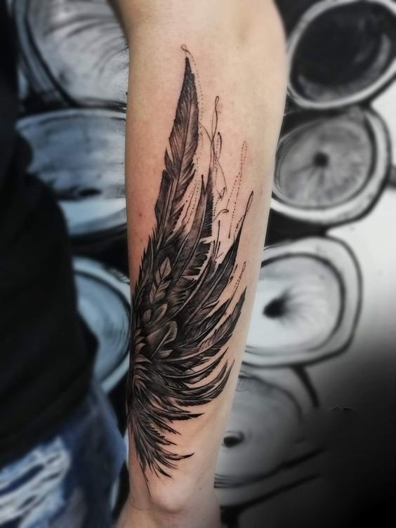 - A szárnyak tetoválásai, amelyekről leszállnak a tollak, az idő tisztességtelen gyors múlásáról beszélnek.
