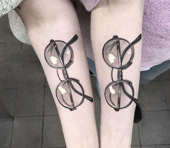 A szemüveg képével ellátott tetoválás az egyik meglehetősen népszerű lehetőség a vázlatokhoz, amelyeket a fiúk és a lányok egyaránt alkalmaznak a testre.