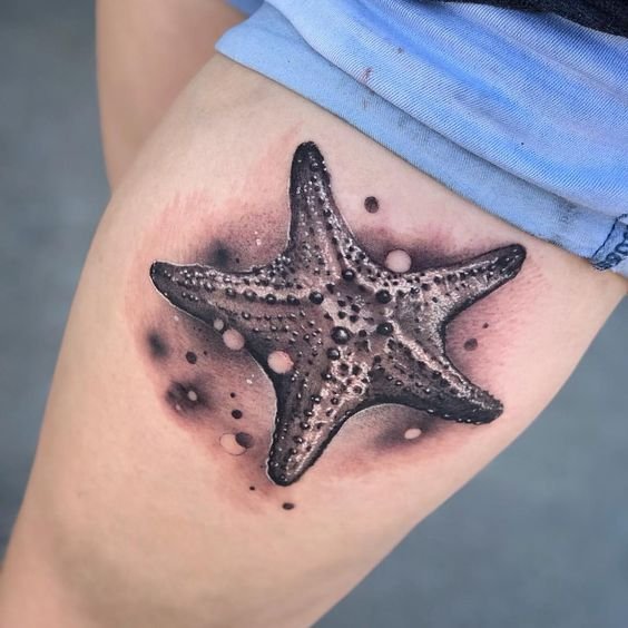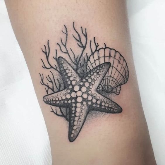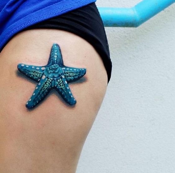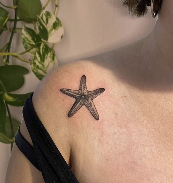 A realizmus stílusában készült ötágú csillag tetoválásai széles körben keresettek. Az ilyen képeken gyakran vannak a tengeri téma további elemei. Például egy tengeri csillag tetoválás kiegészíthető algákkal vagy különféle kövekkel. Különféle halakat és más tengeri élőlényeket is hozzáadhat a képhez.