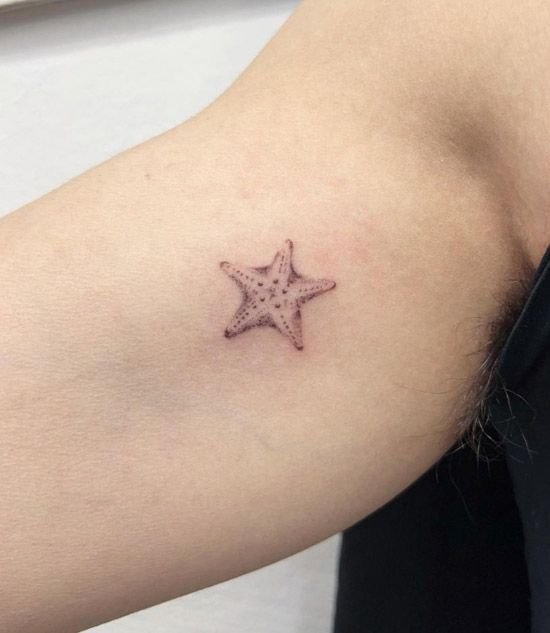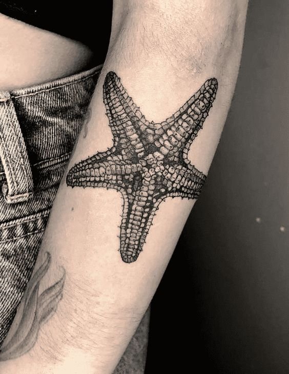 A tengeri csillag nagyszerű lehetőség az ember első tetoválásához, különösen, ha az ügyfél kicsi, eredeti mintát szeretne.