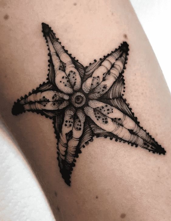 A tengeri csillag tetoválásnak hosszú története van. Korábban egy ilyen hordható kép díszítette a tengerészek testét és azokat, akiket az óceán vagy a tenger vonzott. Ilyen mintát találtak a mélytenger partján élő emberek testén is. Az ókorban a tengeri csillag az életorientáltságot és a céltudatosságot személyesítette meg. A kép segített az embernek leküzdeni az életút minden akadályát. Ezenkívül a csillag a bátorság és az erő jele volt.