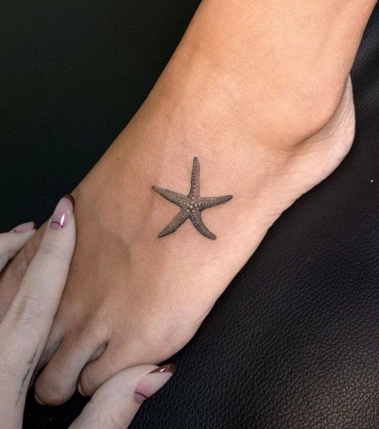 Az olthatatlan szeretet és tisztaság jeleként a tisztességes fél képviselői gyakran választanak egy tengeri csillag tetoválást. Egy ilyen könnyű és finom kép tökéletes a lányok számára. Általában a csuklóra, a bokára, a lapockákra vagy az alsó hasra alkalmazzák.