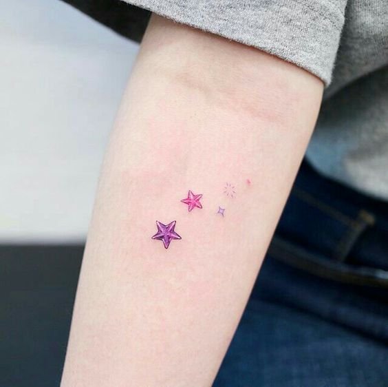 A kis méretű tengeri csillaggal szétszórt vázlatokra nagy a kereslet. Egy ilyen kép nagyon lenyűgözőnek tűnik a háton, a hason, a lapockákon vagy a csípőn.