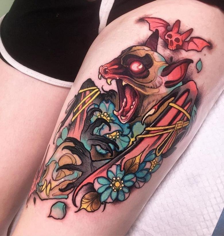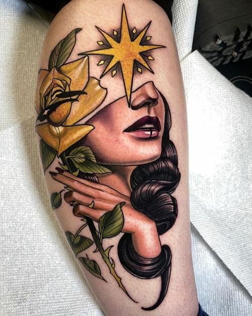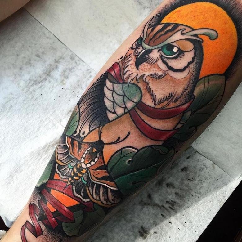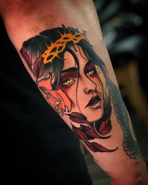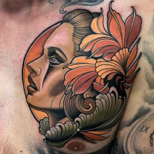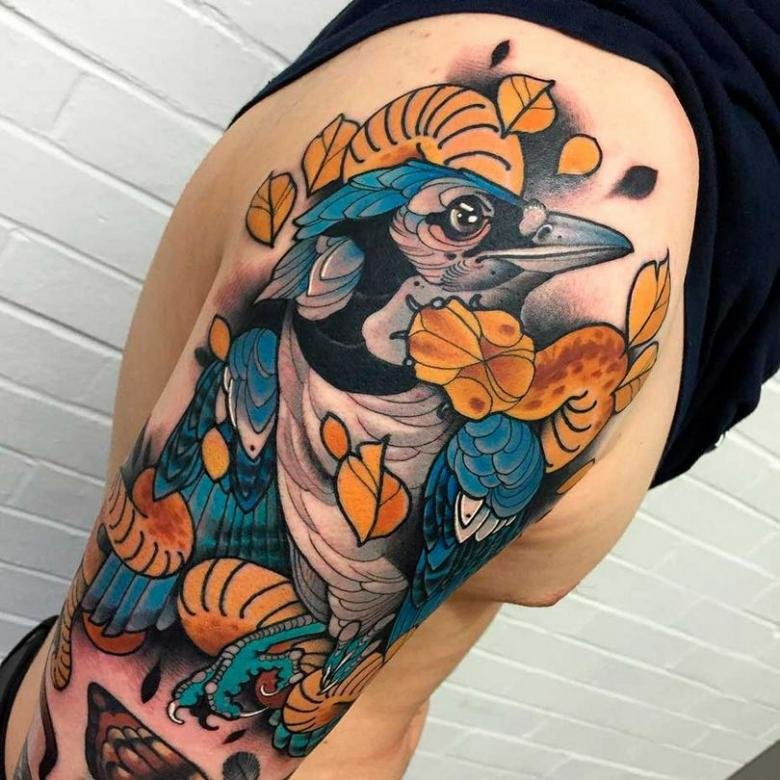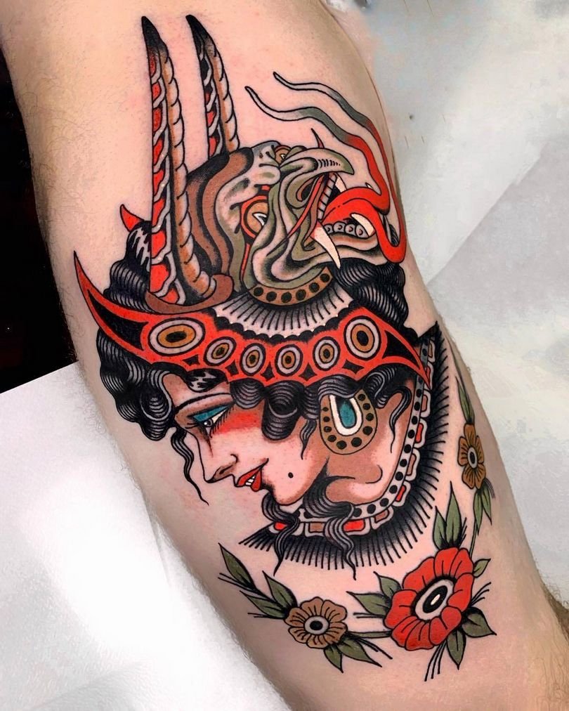 Ez a technika olyan vidám emberek számára alkalmas, akik optimistán nézik a világot és az őket körülvevő embereket. A közepes méretű traditional kép gyönyörűen mutat a vállon, a háton vagy a bordákon.