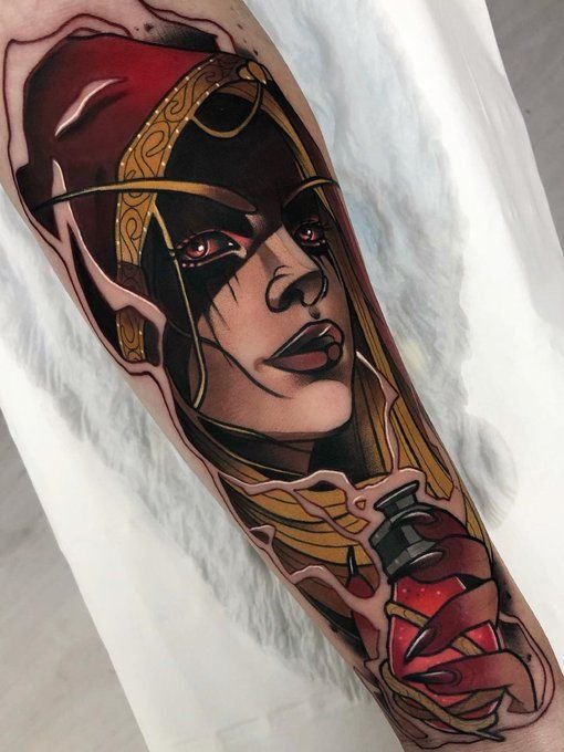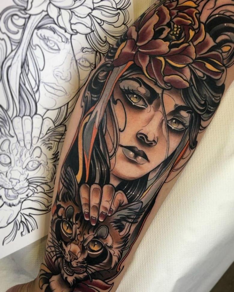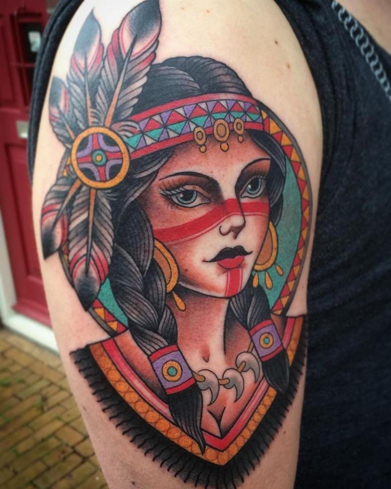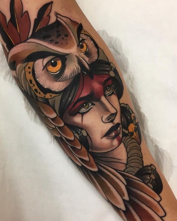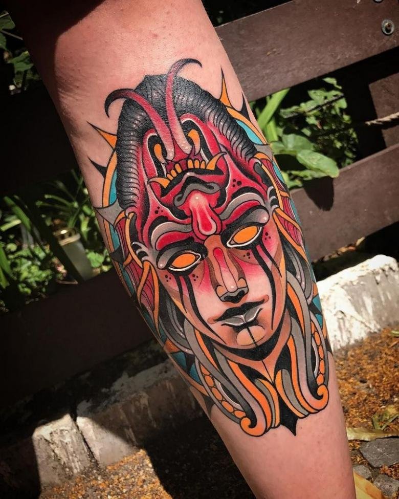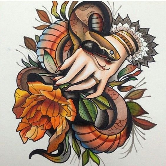 Ez a technika olyan vidám emberek számára alkalmas, akik optimistán nézik a világot és az őket körülvevő embereket. A közepes méretű traditional kép gyönyörűen mutat a vállon, a háton vagy a bordákon.