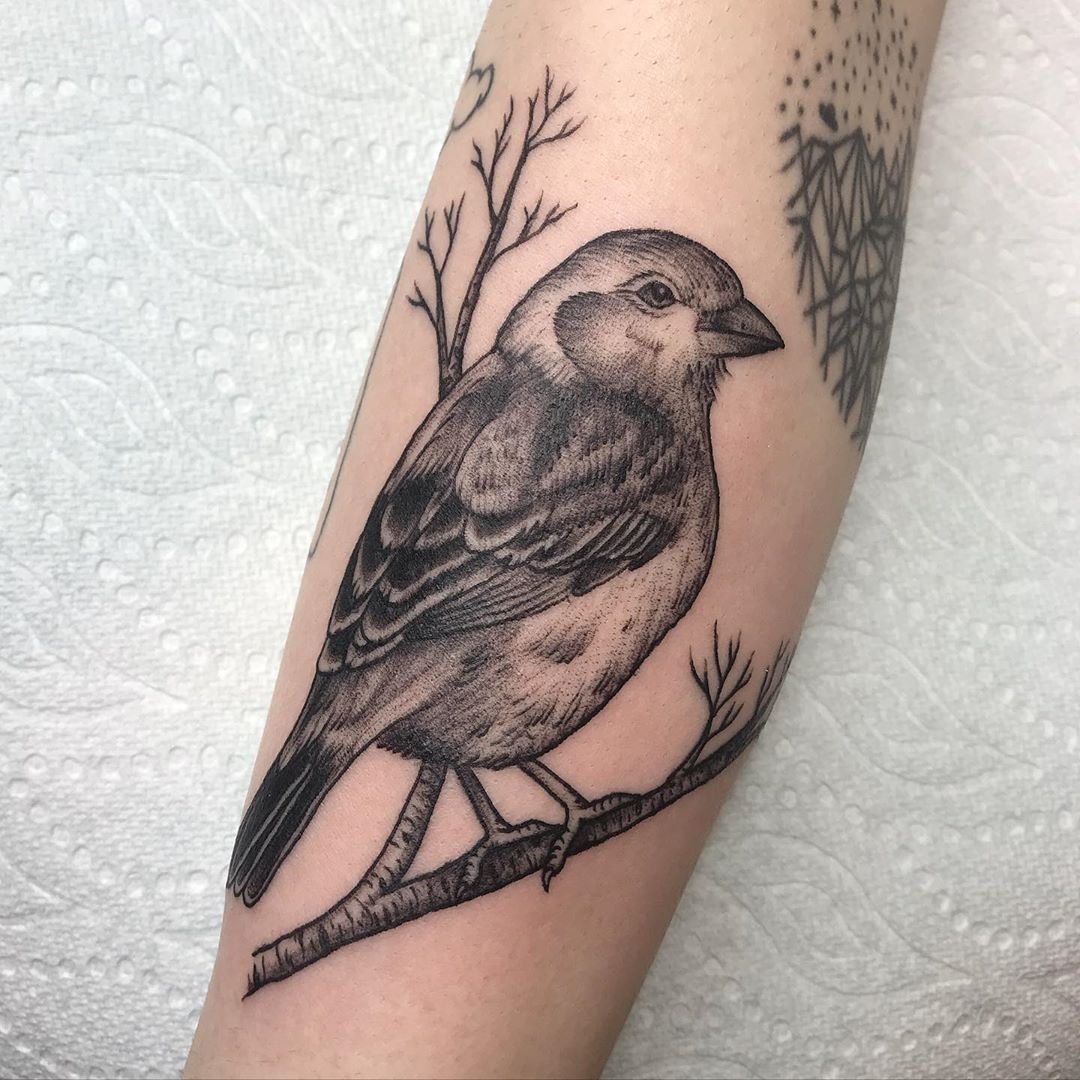Ezt a madarat a Föld bolygó minden lakója ismeri, mert minden városban vannak. Más madarakkal ellentétben a verebek nem repülnek délre, hanem télen maradnak, mert képesek alkalmazkodni bármilyen életkörülményhez. A verebet ősidők óta ismerjük, sok nép mitológiájában gyakran leírták. Mivel ez a leggyakoribb madár, nem meglepő, hogy bekerült a művészi tetoválások birodalmába.